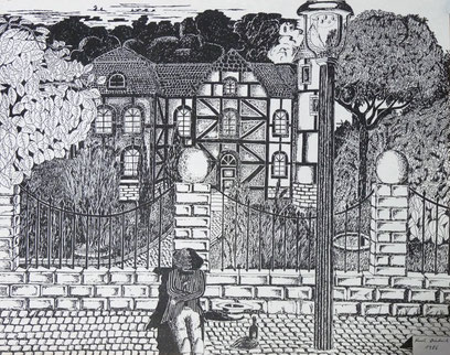 Das ist der Ort Schalbruch im Selfkant, einer der am westlichsten gelegenen Orte Deutschlands an der holländischen Grenze. Gezeichnet aus dem Gedächtnis (und daher nicht ganz originalgetreu) mit