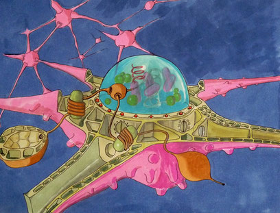Hier habe ich mal ausprobiert, was man noch so alles mit diesen Stiften machen kann. Das Bild zeigt eine Gehirnzelle, aber nicht, wie sie wirklich ist, sondern so, wie ich denke, dass sie sein könnte. Die Realität ist ja oft wesentlich langweiliger - also warum nicht ein wenig nachhelfen!