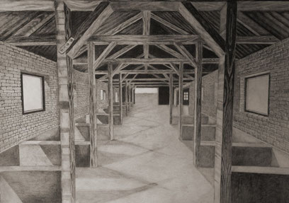 Hier waren wir mit unserer Zeichengruppe in Fohrde in der Nähe der Stadt Brandenburg an der Havel. Beim Sammeln von Motiven trafen wir auf einen verlassen Stall aus DDR-Zeiten. Er hat mich zum Zeichnen dieses Bildes (Bleistift) inspiriert (DIN A 3).